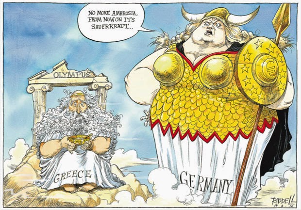 This is from the British Sunday newspaper The Observer. It shows German chancellor Angela Merkel as a Wagnerian Valkyrie, as obvious an ethnic symbol of Germanity as the Star of David is of Jewishness.
